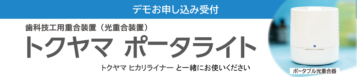 下記に必要事項をご記入ください トクヤマ ヒカリイナー、トクヤマ ポータライトの製品カタログが、ダウンロードできます。 ■トクヤマ ヒカリイナー 製品カタログ https://www.tokuyama-dental.co.jp/products/items/hikareliner_pamphlet.pdf ■トクヤマ ポータライト 製品カタログ https://www.tokuyama-dental.co.jp/products/items/portalite_pamphlet.pdf お申し込みの方へ、弊社担当営業、または、お取り引き歯科販売店様よりご連絡させていただきます。 製品デモは、臨床試用医療機器の提供、および、一定期間の貸出しを行いますので、操作性などじっくりご確認いただけるデモになります。 お申し込み状況によって、お申し込みからデモ実施まで、お時間をいただく場合がございます。 歯科医院名 必須 お名前 必須 姓 名 フリガナ 必須 姓 名 職種 必須 選択してください 院長 勤務医 ラボ(経営) ラボ(勤務) その他 ご住所 必須 〒 - 選択してください 北海道 青森県 秋田県 岩手県 宮城県 山形県 福島県 栃木県 群馬県 茨城県 埼玉県 千葉県 東京都 神奈川県 新潟県 長野県 山梨県 富山県 石川県 福井県 岐阜県 静岡県 愛知県 滋賀県 京都府 三重県 奈良県 兵庫県 大阪府 和歌山県 鳥取県 岡山県 島根県 広島県 山口県 香川県 徳島県 高知県 愛媛県 福岡県 佐賀県 大分県 熊本県 宮崎県 鹿児島県 長崎県 沖縄県 電話番号 必須 ‐ ‐ 連絡のつく電話番号(携帯番号など) ‐ ‐ メールアドレス 必須 確認用: ※ メールアドレスはよく確認して入力してください。 お取り引き歯科販売店名・支店名 必須 営業ご担当者名 自由記入欄 個人情報の取扱い 必須 お客様の個人情報、お寄せいただいたお問い合わせ内容は厳重に取り扱います。 お客様の個人情報は、弊社の個人情報の保護指針に記載される利用目的の範囲においてのみ使用します。 【個人情報保護方針】 https://www.tokuyama-dental.co.jp/utility/privacy.html 確認した 確認